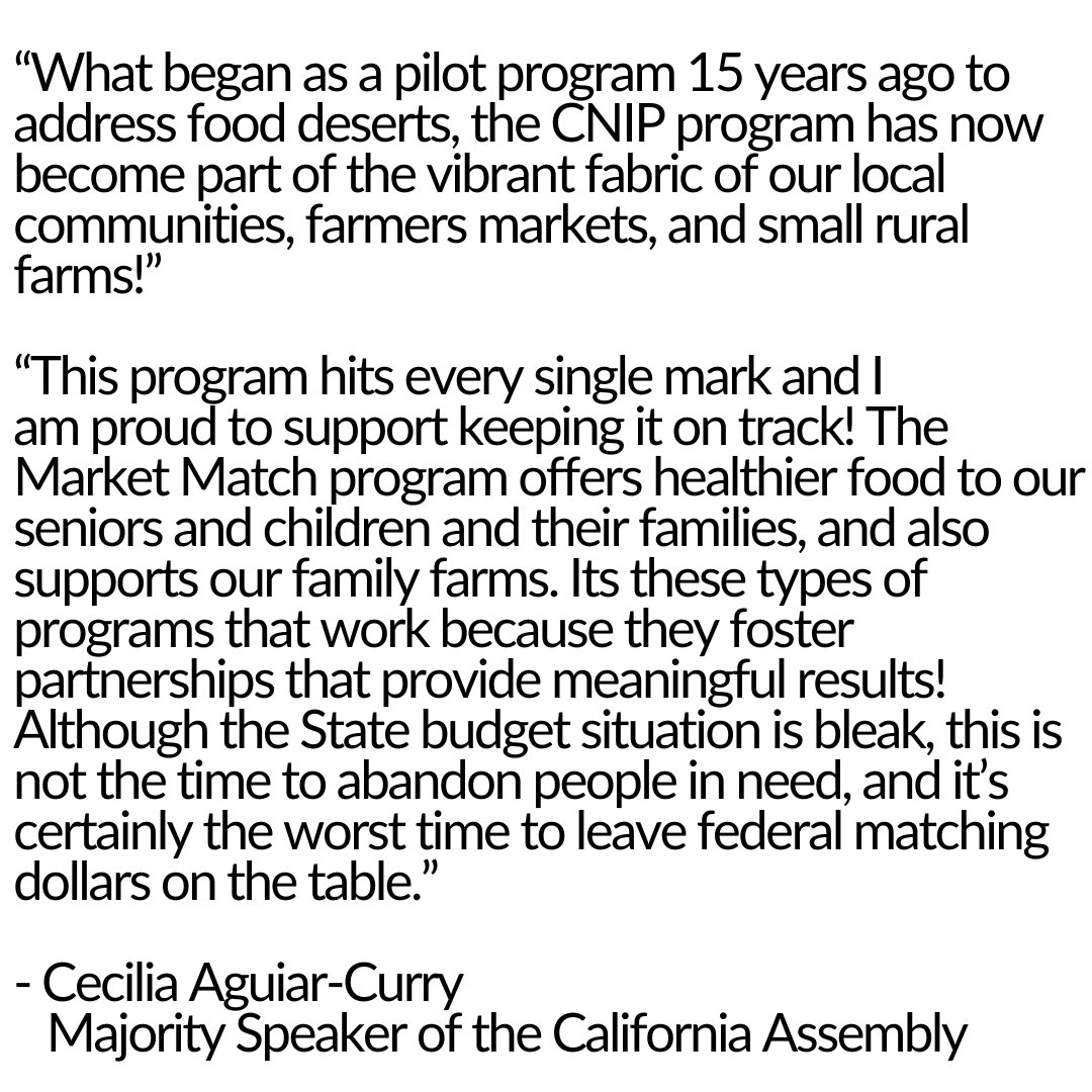 Feed California Families. Support Local Farms. Save Market Match. Fund CNIP.